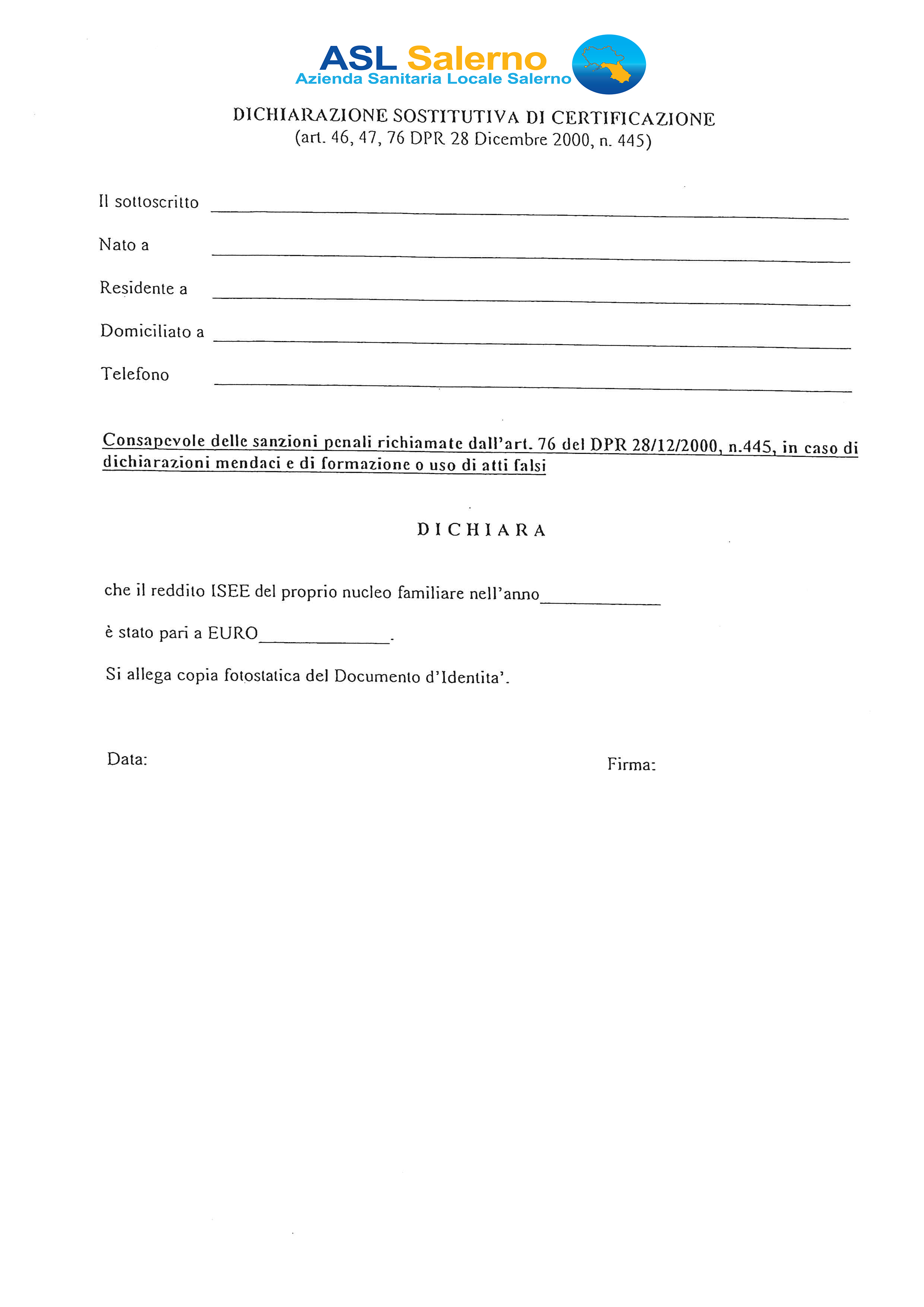 - autocertificazione reddito ISEE